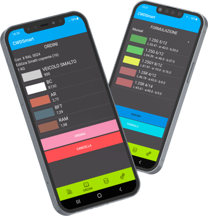 The other components that place this product as a real revolution in world colorimetry concern the presence of a central server where they are collected, managed and shared all the results of the formulations required by CWD users and the equally fundamental creation of an app, unique in the world, designed specifically to make even more streamlined and flexible the work of color industry operators.